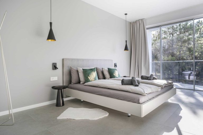 Für einen angenehm warmen Aufenthalt- auch in den Wintermonaten sorgen eine Fußbodenheizung im gesamten Objekt und natürlich der beheizte Pool. Jedes Zimmer ist hochwertig eingerichtet und verfügt über ein eigenes Bad. Eine Mischung aus eleganten individuell gefertigten Möbeln und natürlichen Texturen rundet das schicke und dennoch komfortable Innendesign ab.
