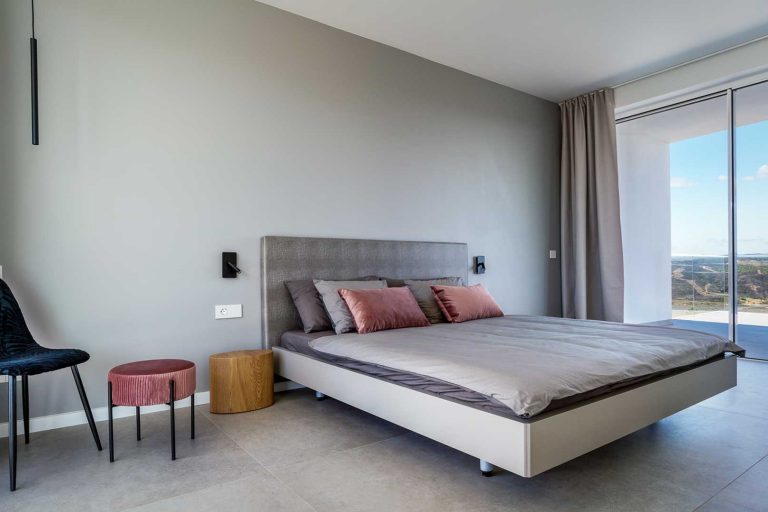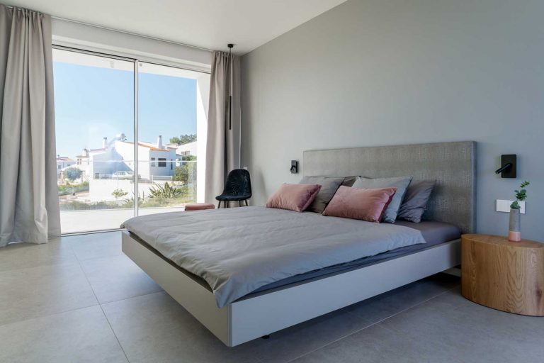 Die Villa bietet Raum für inspirierende Aufenthalte in einer vertrauten und entspannten Umgebung. Vier ruhige Schlafzimmer mit eigenem Bad, offene Wohnbereiche und großzügige Terrassen schaffen ein Ausgleich zwischen Privatsphäre und Zusammengehörigkeit. Die Tage beginnen oft mit Yoga auf der Dachterrasse, während die Sonne über dem Amoreira-Tal aufgeht. Später führen Wege durch den umliegenden Naturpark zu den traumhaften Atlantikstränden – ideal zum Surfen, für lange Spaziergänge oder einfach nur, um die Weite der Küste zu genießen. Am Abend versammeln sich die Gäste wieder um den langen Tisch, auf der Terrasse oder am Pool, während die Stille der Landschaft hereinbricht und der Tag langsam zu Ende geht.